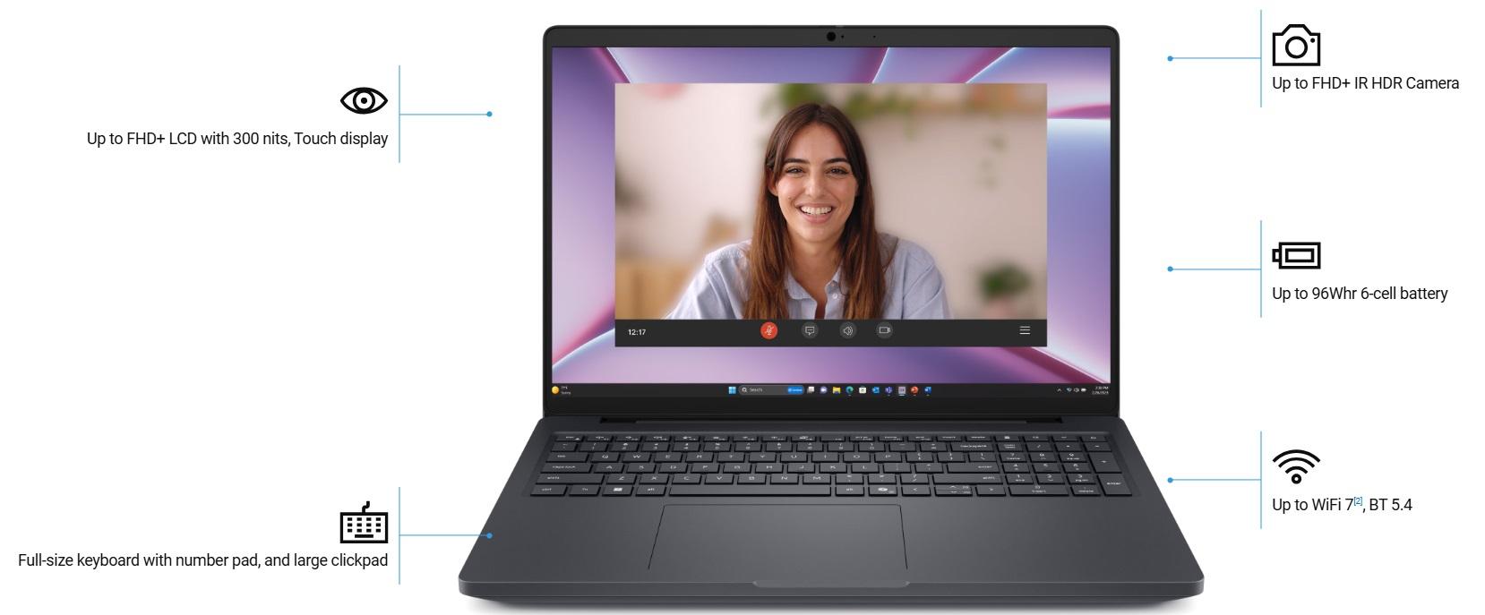 Screen: 16 FHD+ LCD with 300 nits, Non-touch, FHD HDR RGB Camera, Microphone, WLAN