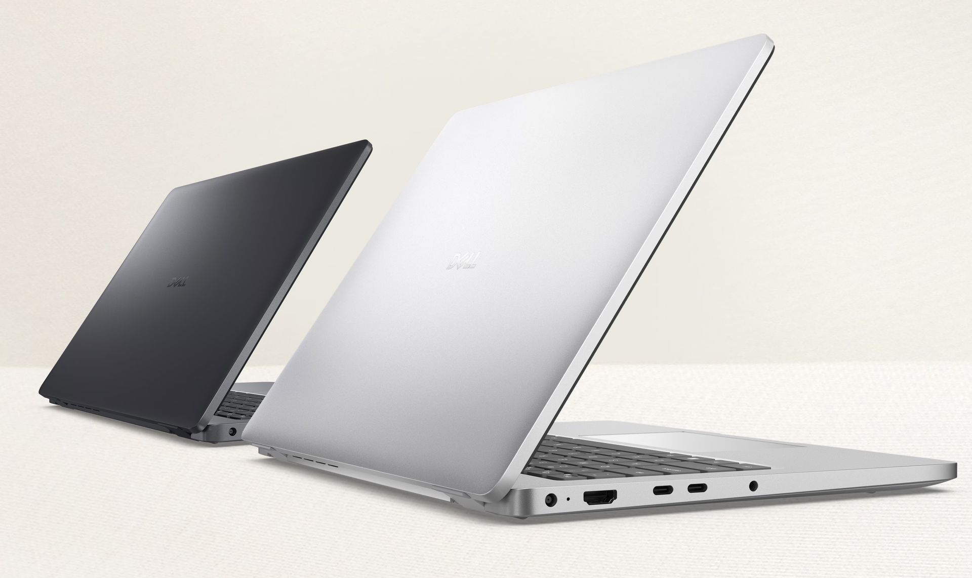The Dell Pro 14 features a sleek metallic finish available in the platinum silver color and a textured finish in the magnetite color.
