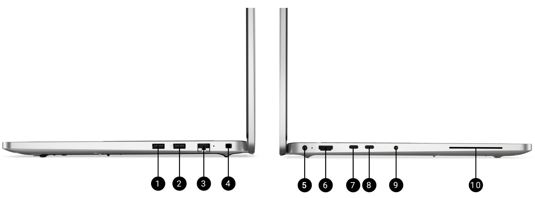 PORTS: 2 x Type-C | 1 x 4.5mm barrel power delivery | 2 x USB 3.2 Gen 1 Type-A | 1 x HDMI 2.1 | 1x RJ-45 (1 Gbps) | 1 x Universal Audio Jack | 1 x Wedge-Shaped Lock slot